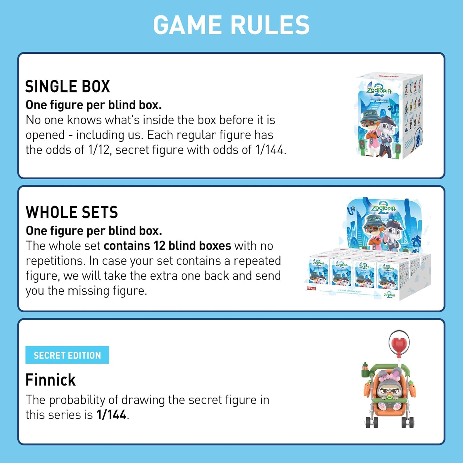 Embark on the next adventure in Zootopia! This series includes 12 exquisitely designed character models, and purchasing the entire set ensures that all basic models are collected without duplication. Each blind box is a random surprise, with a 1/144 chance of encountering rare secret items, making it the perfect trendy choice for collecting and gifting.